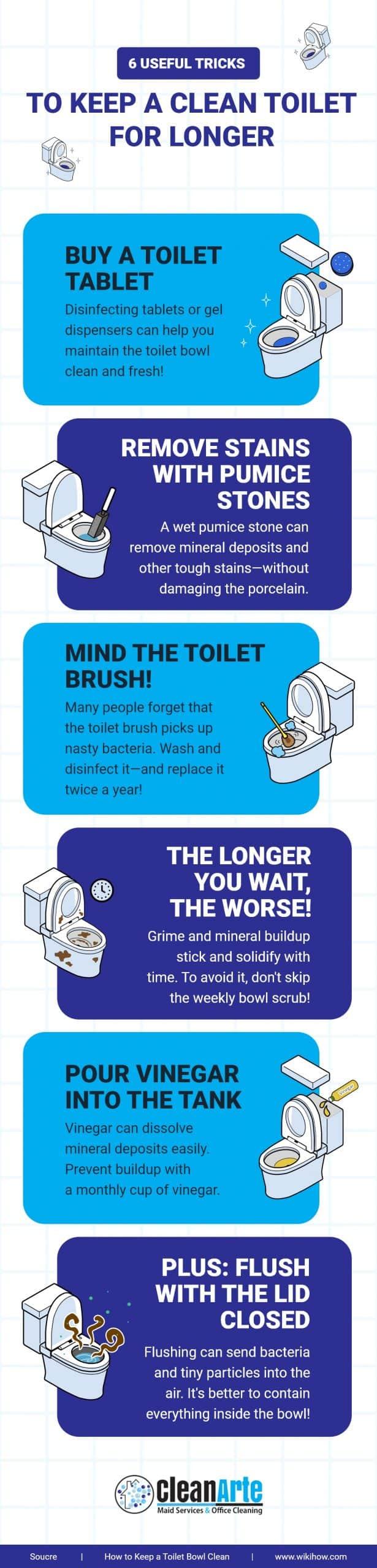 A toilet that’s cleaned often never becomes hard to clean.